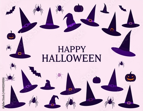 Happy Halloween Witch Hats and Spooky Decorations Happy Halloween
