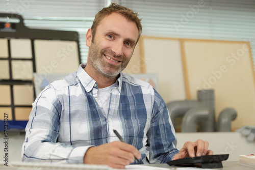 happy man showing a calculator