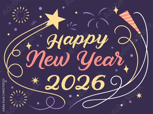 happy, new year, 2026, celebration, greeting, festival, fireworks, holiday, event, festive, background, party, design, card, poster, banner, typography, style, colourful, decorative, star, lantern, sparkle, light, fun, joy, wishes, message, invitation, seasonal, future, calendar, countdown, annual, starry, cheerful, confetti, illustration, vector, artwork, graphic, template