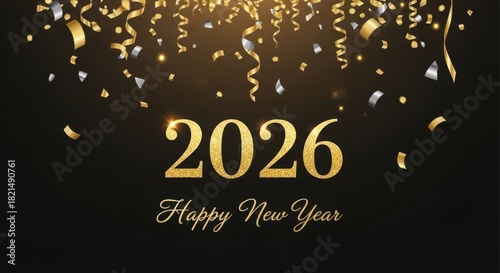 sparkle, social, media, concept, number, text, 2026, happy, background, card, gold, three-dimensional, greeting, poster, new, ribbon, holiday, year, confetti, banner, glistering, luxury, design, gift, new year, celebration, illustration, christmas, signs, symbol, vector, label, winter, decoration, hot drink, neon, christmas