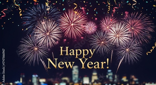 new, year, happy, fireworks, city, skyline, night, celebration, holiday, event, party, abstract, spark, light, festival, design, fire, evening, dark, colourful, show, anniversary, christmas, greeting, card, decoration, display, town, urban, scene, building, landmark, tower, dusk, sky, silhouette, travel, tour tourism, bright, glow, shiny, effect