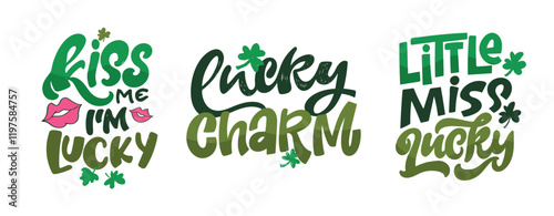Happy St. Patrick's Day, Lucky sharm. Cute hand drawn doodle lettering quote. Lettering for t-shirt design, mug print, bag print, clothes fashion. 100% hand drawn vector image.