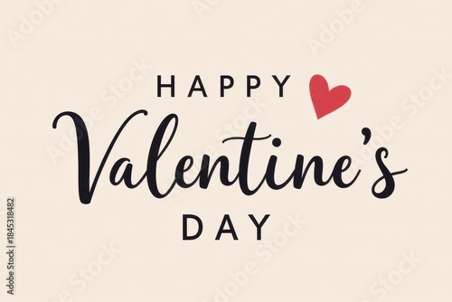 "Happy Valentines Day" lettering greeting card with red heart on the pink background