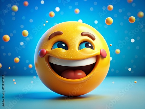 Happy Yellow Emoji 3D Render, Smiling Face, Blue Background, Food Photography Concept