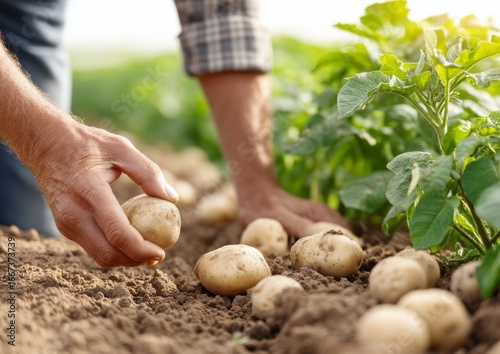 Harvesting fresh potatoes local farm agriculture photography outdoor setting close-up view sustainable farming