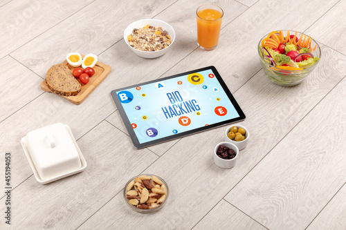 cyberspace, receipe, lifestyle, freshness, fruit, ingredient, balanced, bio, eco, loss, still, weight, calorie, culinary, statistic, cooking, fresh, vegetable, online, dieting, natural, closeup, slimming, concept, vegetable, eat, table, application, vitamin, computer, vegetarian, organic, app, health, view, top, home, meal, tablet, diet, food, nourishment, healthy