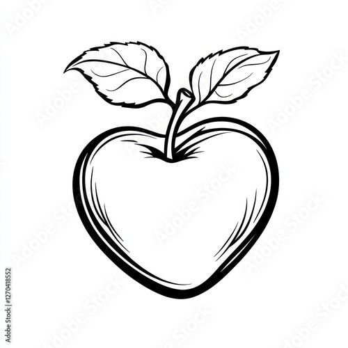 Heart-shaped apple, simple line drawing, healthy food, graphic design