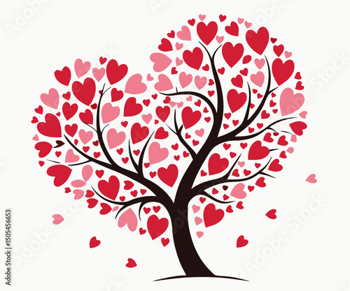 Heart-Shaped Tree with Pink and Red Hearts: Valentine's Day Graphic