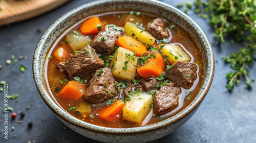 beef, stew, vegetable, rustic, bowl, hearty, meal, simmering, carrot, potato, broth, fresh, herb, cosy, food, kitchen, countertop, comfort, culinary, cooking, savoury, dish, preparation, traditional, receipe, warmth, family, dinner, aromatic, delicious, ingredient, nourishment, home, seasonal, favor, garnished, flavorful, rich, inviting, dining, tasty, presentation, chef, art, lover, warming