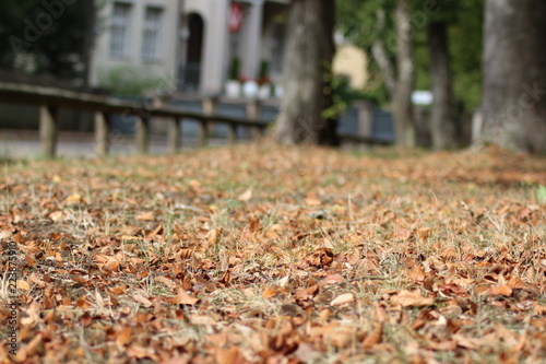 autumn, forest, tree, fall, nature, park, leaf, season, countryside, rail, yellow, forest, green, red, leaf, orange, outdoors, colourful, road, grass, paint, brown