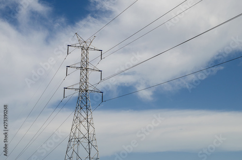 high voltage pole and blue sky.