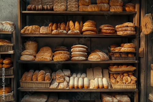 High-Resolution Photography of Assorted Breads and Pastries in Bakery Store AI generated illustration