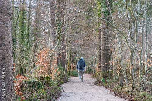 Hiker walks agile along the Camino de Santiago. Roncesvalles