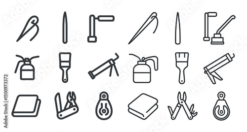 tool, repair, hardware store, line, vector, set, outline, silhouette, design, collection, drawing, construction, equipment, artwork, graphic, carpenter's shop, craft, household goods, handyman, technical drawing, fix, enhancement