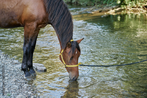 Horse drinking from river