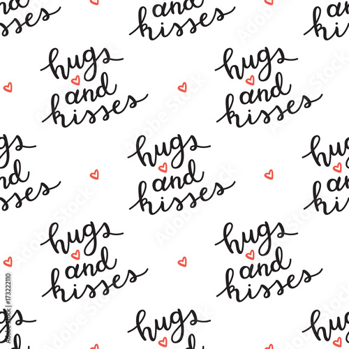 hugs and kisses lettering, vector handwritten text, seamless pattern