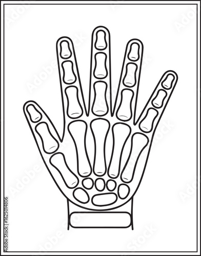 Human anatomy metacarpals vector outline illustration for medical educational coloring book design kids and adults