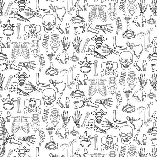 human body skeleton anatomy doodle seamless pattern