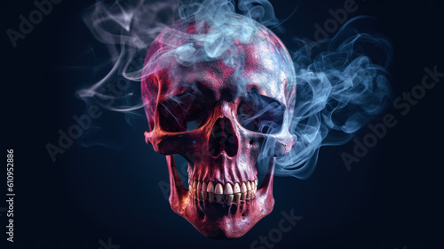 Human skull in smoke created with generative AI technology