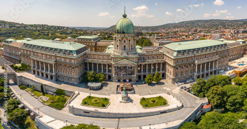 Hungary - Budapest landscape from above with Buda castle, Chain Bridge, Parlament, Danube river, Matthias Church