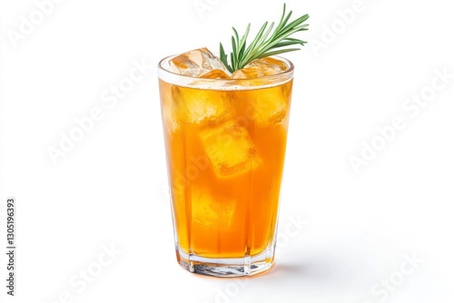 Iced Tea Refreshment Served in Glass with Rosemary Garnish on White