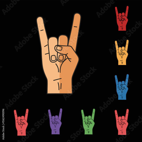 Illustrated Hand Gesturing Rock On Sign in Multiple Colors