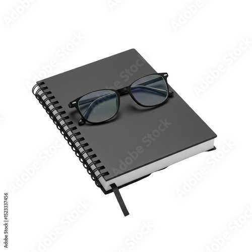 Illustration Black Notebook with Glasses Isolated on Transparent Background