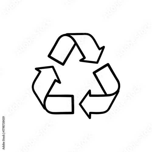 Illustration of a simple black and white recycling symbol with three arrows in a triangular shape