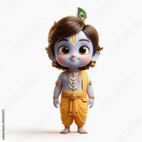 Illustration of little Krishna in 3D animation, wearing his traditional clothes