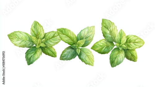 illustration of mint leaves in front view on a white background, ideal for culinary, herbal, or wellness design themes.
