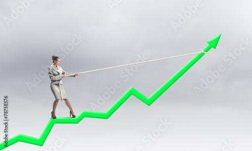 chart, increasing, income, raise, woman, business, green, businesswoman, graph, achievement, rising, rope, profit, financial, marketing, diagram, improvement, caucasian, finance, stock, graphic, sale, female, growth, up, pull, progress