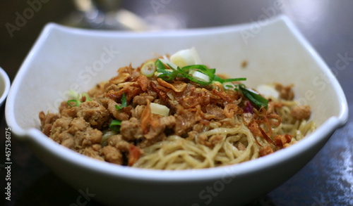 Indonesian chicken noodle or mie ayam.