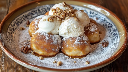 Indulge in Greek Loukoumades and Honey Lavender Ice Cream A Dessert Combination of Delight Greek Taverna Culinary Bliss