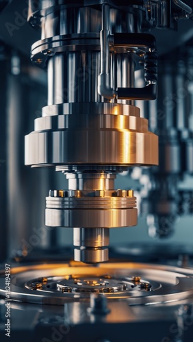 Industrial machinery with metallic components and glowing light.
