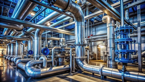 Industrial zone with steel pipelines, valves, and pumps , infrastructure, factory, manufacturing, industry