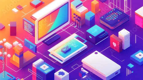 isometric, game, design, development, coding, creative, process, technology, programming, digital, art, graphic, gaming, industry, vibrant, colours, bright, palette, visual, aesthetic, computer, science, software, engineering, innovative, solution, concept, creation, language, thinking, artistic, skill, colours, psychology, mechanic