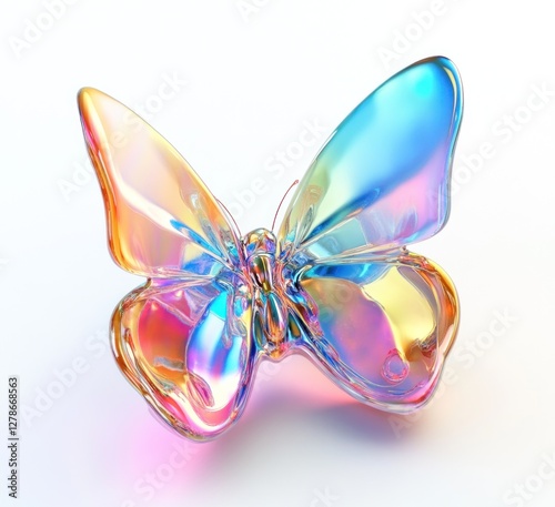 butterfly, glasses, iridescent, colourful, wing, insect, art, design, decoration, vibrant, bright, shiny, gloss, smooth, transparent, beauty, nature, fantasy, magical, delicate, graceful, elegant, symbol, transformation, freedom, spring, summer, gem, gem, pastel, rainbow, spectrum, light, shimmer, sparkle, glistering, macro, closeup, object, background, white, studio, isolated, three-dimensional, render, digital