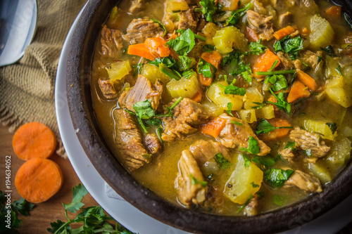 beef, britain, british, carrot, cook, cooking, cookery, dinner, dish, eat, european, food, herb, homemade, ingredient, ireland, irish, lamb, meal, meat, napkin, onion, parsley, pot, potato, rustic, soup, spicey, stew, tableware, tasty, towel, traditional, vegetable