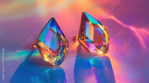 crystal, stud, earring, iridescent, gemstone, jewellery, fashion, accessory, colourful, sparkly, shiny, bling, diamond, faceted, transparent, elegant, unique, modern, woman, gift, sale, purchase, discount, stylish, trendy, pretty, beautiful, luxury, hand-made, art, design, glasses, light, pink, purple, blue, rainbow, colours, detail, closeup, studio, photo, photo