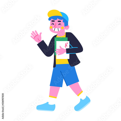 Isolated boy character holding a test Back to school Vector illustration