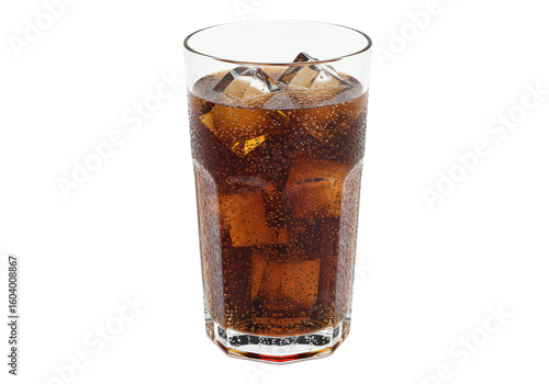 Isolated Refreshing Glass of Cola with Ice Cubes