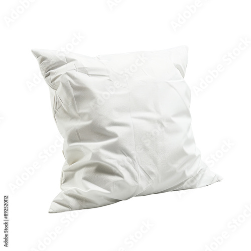 Isolated Soft White Pillow with Wrinkles and Texture Without Background.