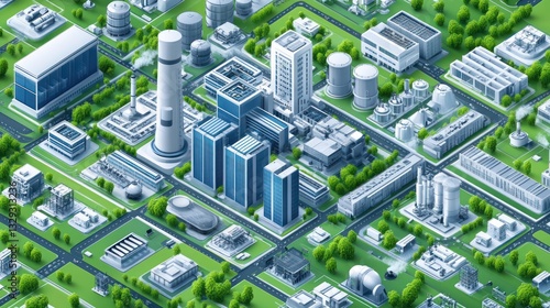 city, industrial, isometric, building, factory, plant, skyscraper, city landscape, urban, infrastructure, technology, energy, power, production, manufacturing, industry, construction, architecture, design, development, environment, nature, green, park, tree, road, street, transportation, communication, network, complex, modern, sustainable, progress, growth, innovation, efficiency, economy, business, commerce, society, community, global, earth, future, planning, map, aerial, view