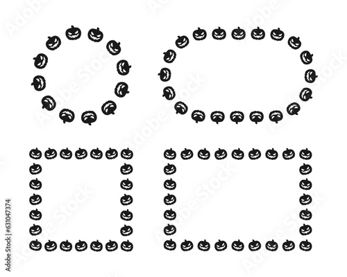 Jack O Lantern Pumpkin Halloween Frame Border Silhouette Set. Social Media Post Card Template Vector Illustration.