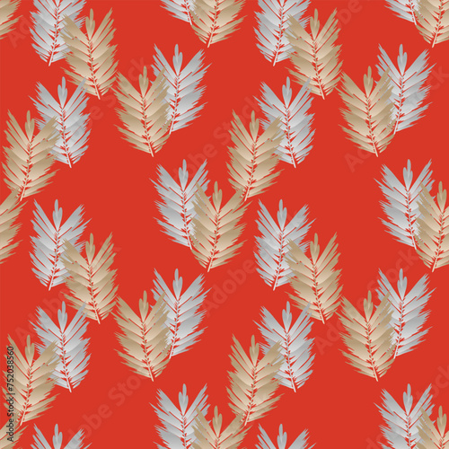 Japanese Brush Feather Motif Vector Seamless Pattern
