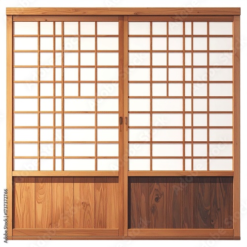 Japanese shoji door, wooden frame, translucent panels