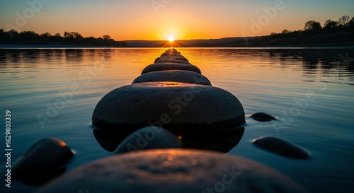 river, sunset, photorealistic, sun, arrival, accomplishment, destination, landscape, nature, zen