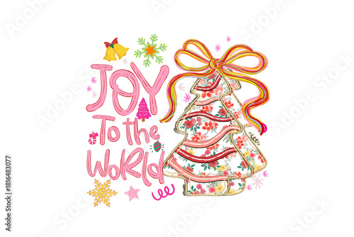 Joy to the world, christmas tree with floral pattern illustration Sublimation Design