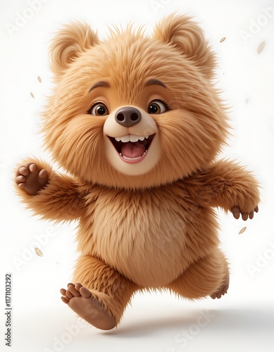 leaping, illustration, design element, spring, summer, white background, graphic, animation, plush toy, digital artwork, generative, ai, brown, run, jump, happy, bear, baby, funny, cute