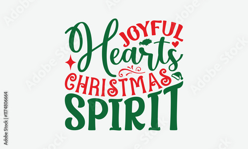 Joyful Hearts Christmas Spirit - Christmas Day T-Shirt Design, Illustration Written Vector T Shirt Design, Bags, Posters, Cards, Isolated On White Background.